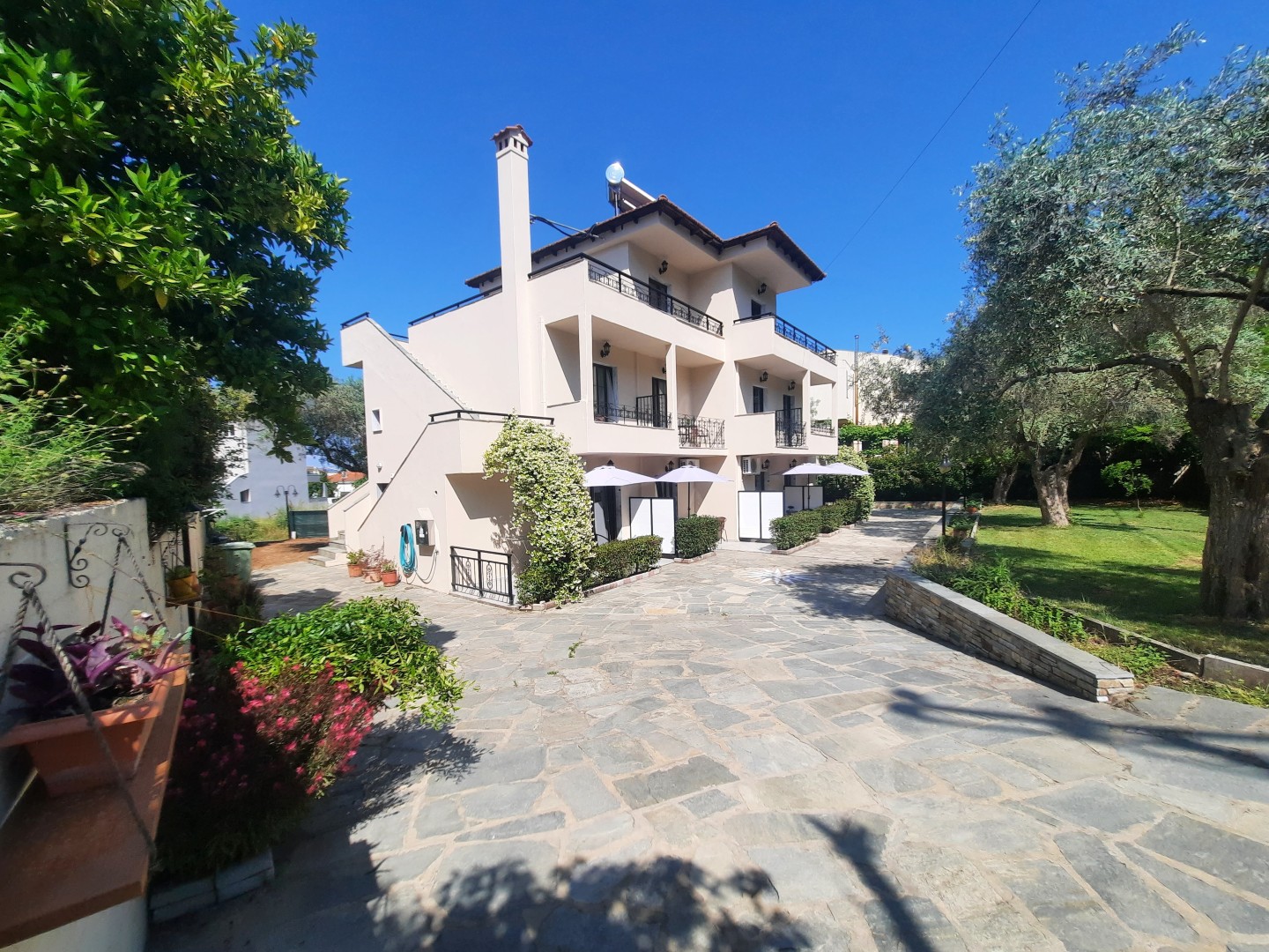 At Studio del Mar in Thassos, the hotel’s outdoor area has been designed to offer moments of relaxation in a natural and well-kept environment. Amongst trees, elegant plants and colourful flowers, a sense of peace is created that accompanies every moment of your stay.